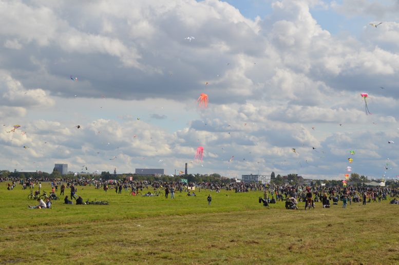 Walking onto the Tempelhofer Feld, it is easy to understand why the park has become one of Berlin’s most beloved green spaces. Teens speed down the former runways of the abandoned airport on skateboards and bicycles, couples picnic on the wide field, and high above—where airplanes once rose into the sky—kites soar in their place. Today, a kite festival has brought Berliners out of their respective neighborhoods and to the historic landscape of Tempelhof.
