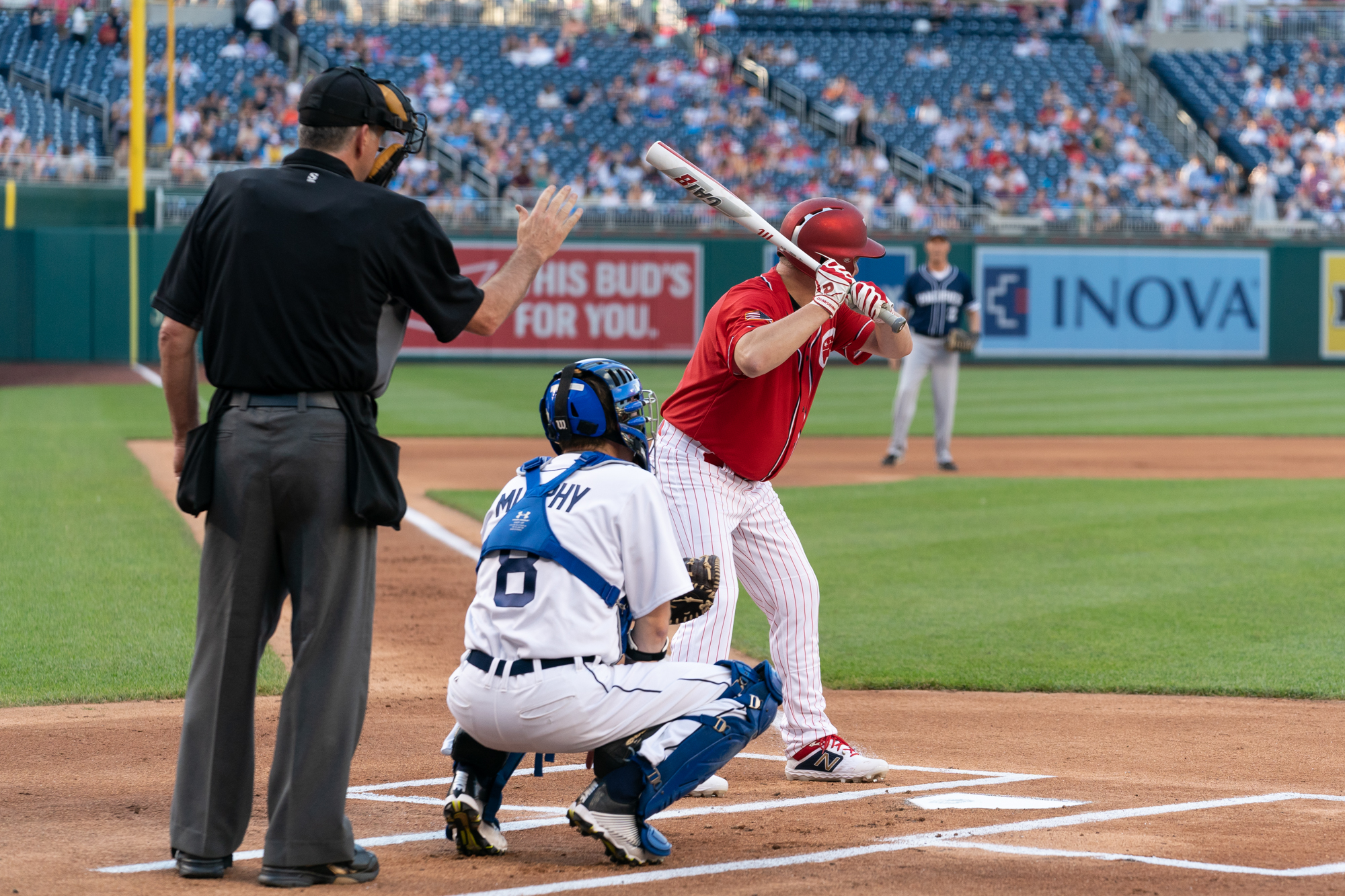At Nationals Park, any hit is almost certainly a foul or a guaranteed out. But once a year, congress members fumble for fly balls and make our hearts stop diving for second base. The man to my left explains that the Democratic pitcher is getting tired, and “you can tell because he can’t lift his knees up to his letters.” With his gray t-shirt and slights to both teams, one can’t really tell whose side he’s on—my guess is baseball’s. And, while the crowd momentarily reveled in the spectacle of congressional baseball, fans were reminded that their rights were in the hands of the night’s pitchers and hitters as climate protesters rushed the field and were taken down almost immediately by Capitol police.